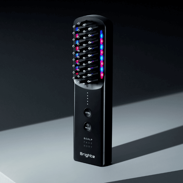 Brighteエレキブラシプラスは、顔・頭皮・全身に使える1台多役のブラシ型美顔器です。