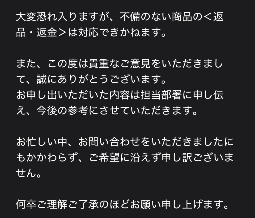 最終的には返品・返金対応になりましたが、