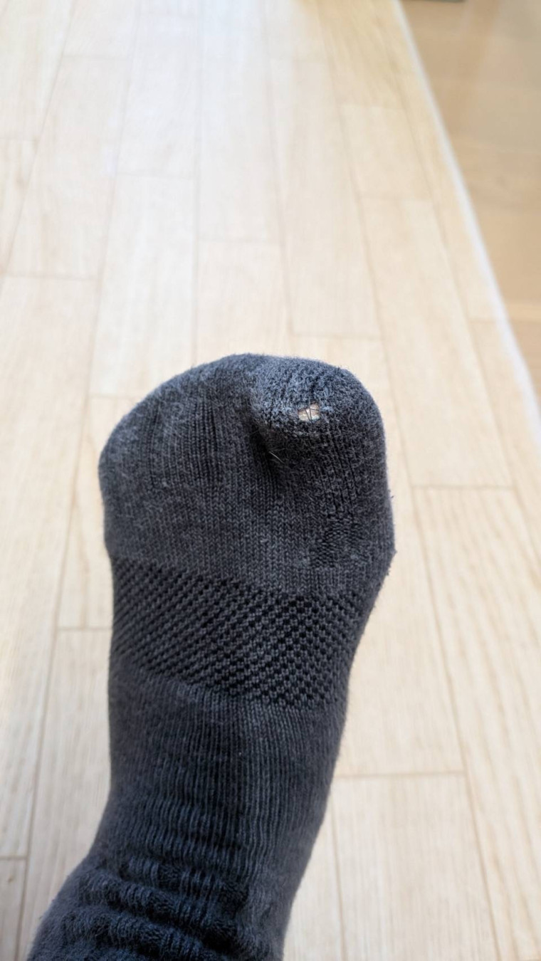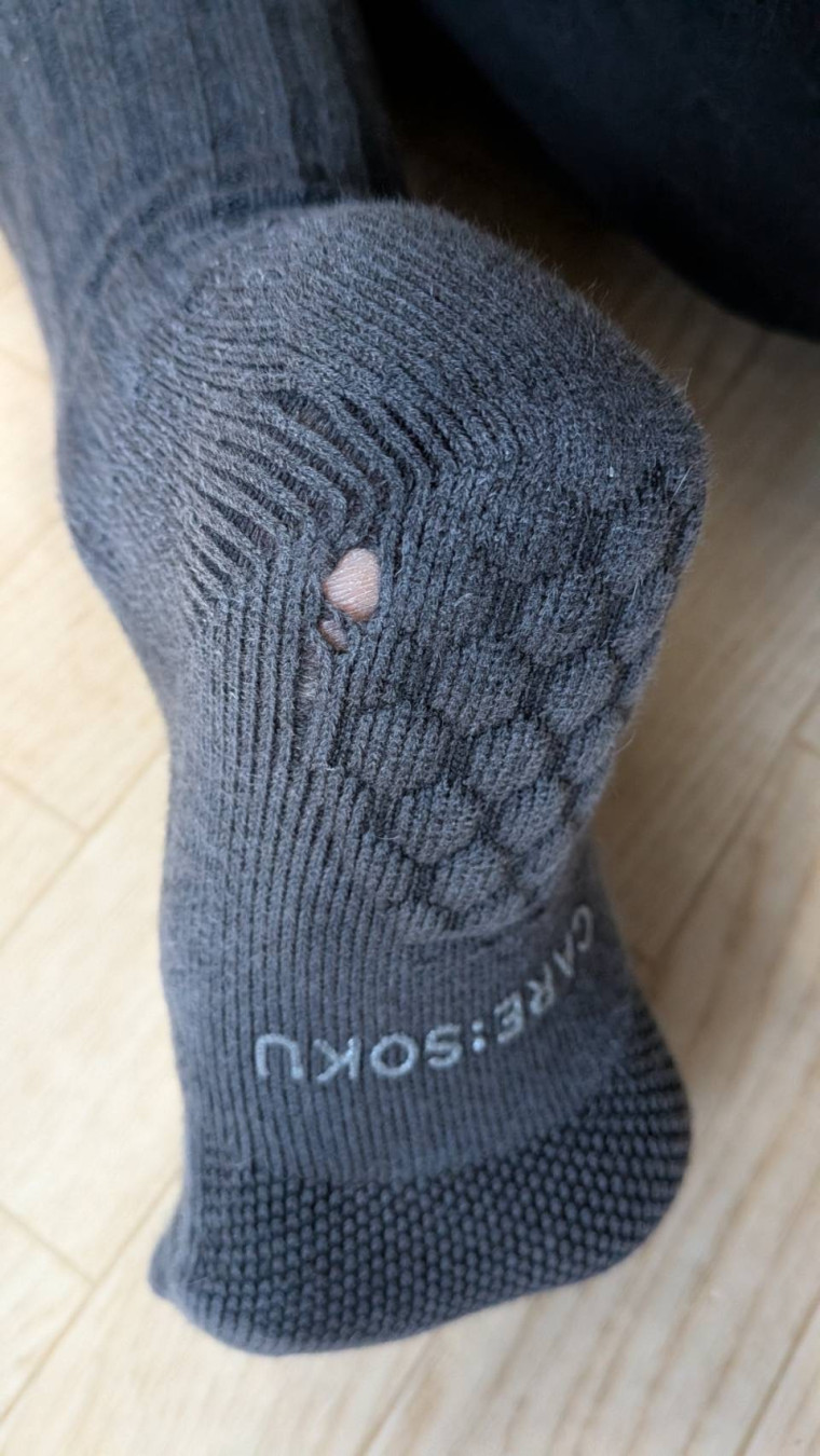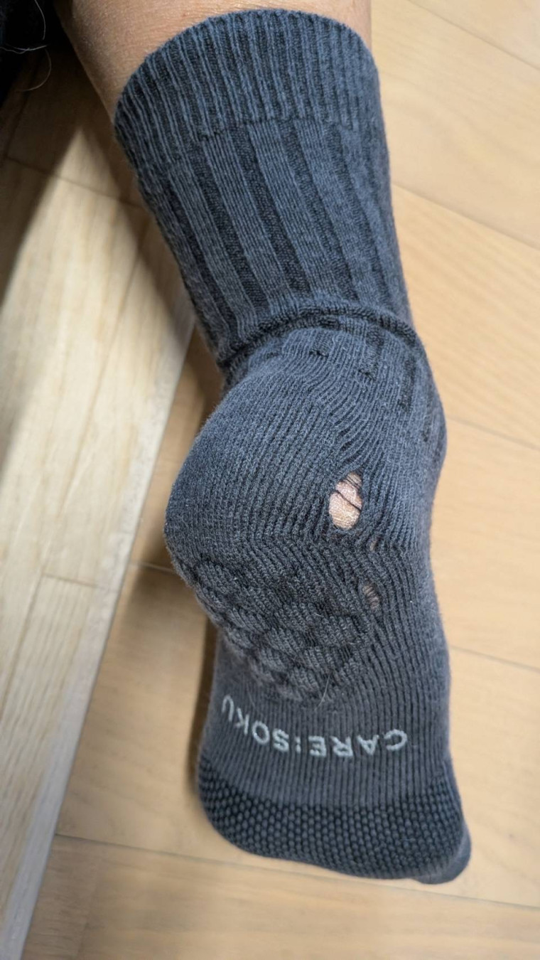 どの様な商品かわからなかったのと、値段も高価なので、まず1足買って、1ヶ月履きました。ちょうど1ヶ月で、足先、踵左右共穴があきました。びっくりしました。3足1000円位のソックスでも破ける事はなかったので、納得できなかったので、電話相談室に電話したら、6〜7足を使い回して、足の癖の為?だから魚の目とかできなくする為、ケアソクを買ったのだから、メーカーさんとしてはその対策もすべきでは?糸が弱いのか、縫製が、悪いのか、値段に見合う商品を、皆の期待を裏切らないで、欲しいです。
