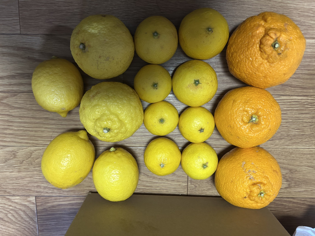 この時点で黄金柑のキロ数表示+おまけレモンは失くなり、本日届いた結果、黄金柑8個➕その他詰め合せで総重量は1.9キロしかありませんでした。
