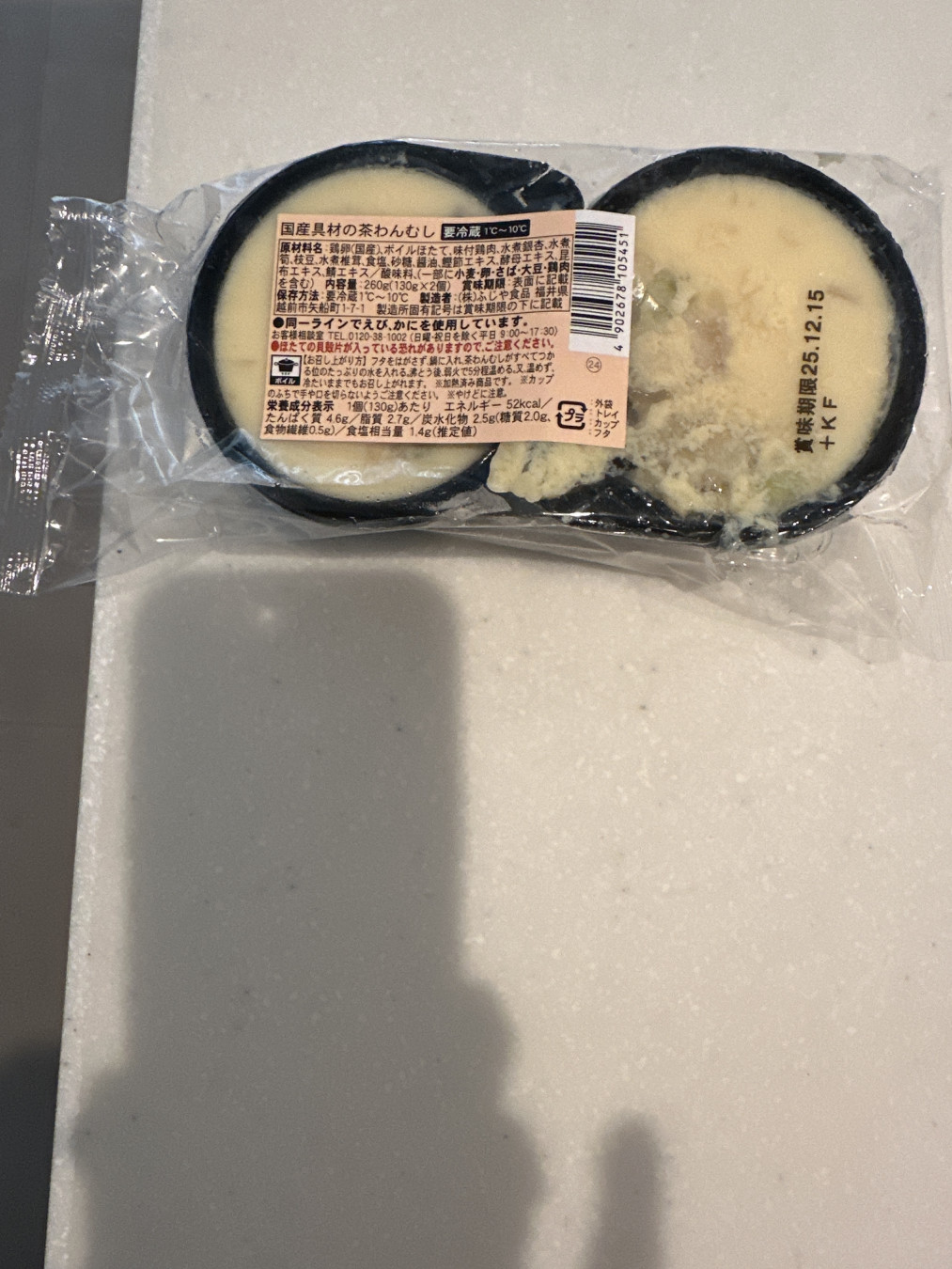 先週は2個1パックの茶碗蒸しの一個が破損してぐちゃぐちゃになっていました。こちらは無料ではありませんよ。