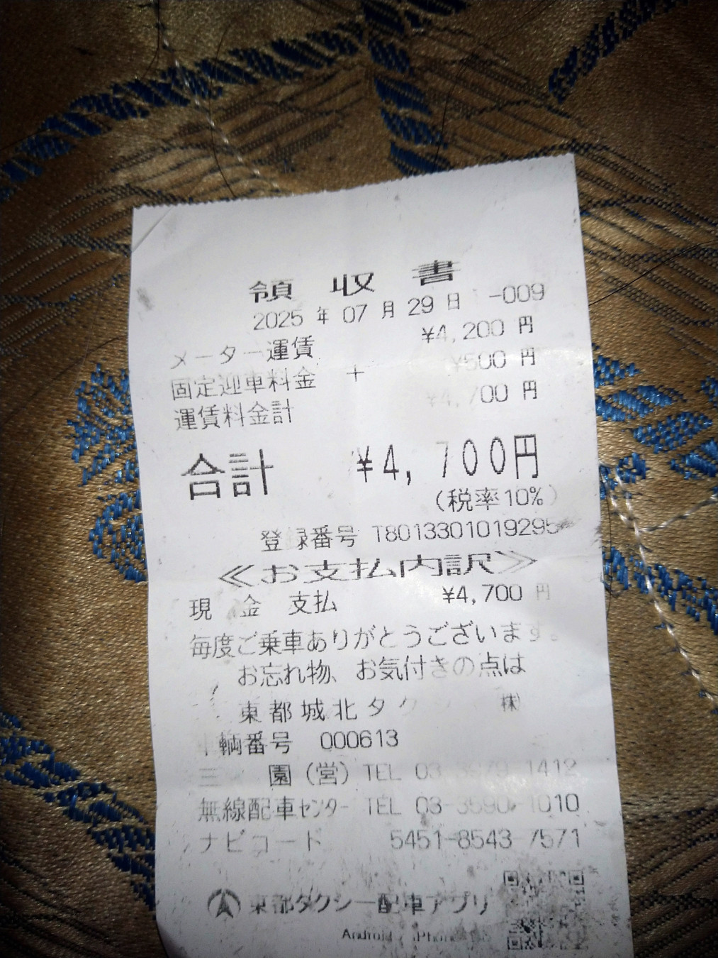 カンキョーさんは、大阪ビジネスパーク辺りから昼間乗って1600円……同じ距離走ってる?